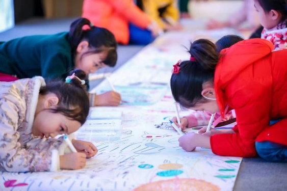 图为 绘出“航天梦”活动现场