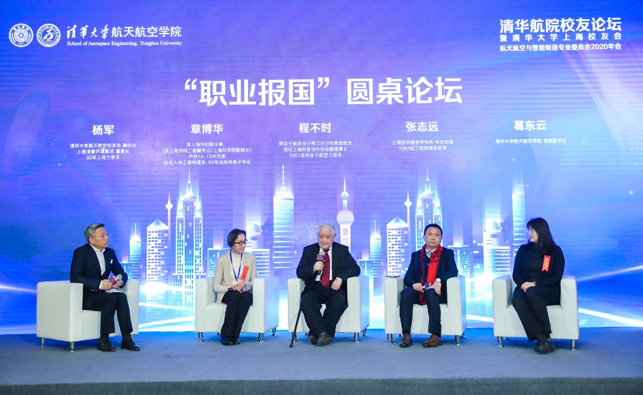 原运十副总设计师, C919专家组成员程不时学长、原上海科学院副院长、上海市妇联主席章博华学长、上海空间推进研究所所长助理张志远学长,通过圆桌论坛的方式,与大家分享了“职业报国”的精力与对事业的深刻体会。麻豆tv