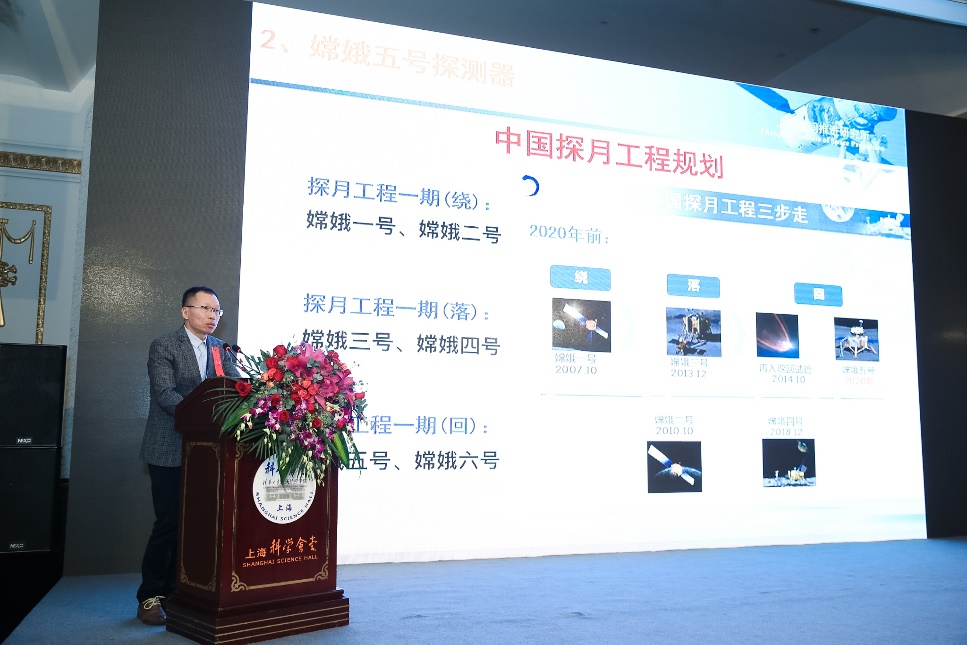 图为 嫦娥五号探测器副总设计师洪鑫作主题演讲