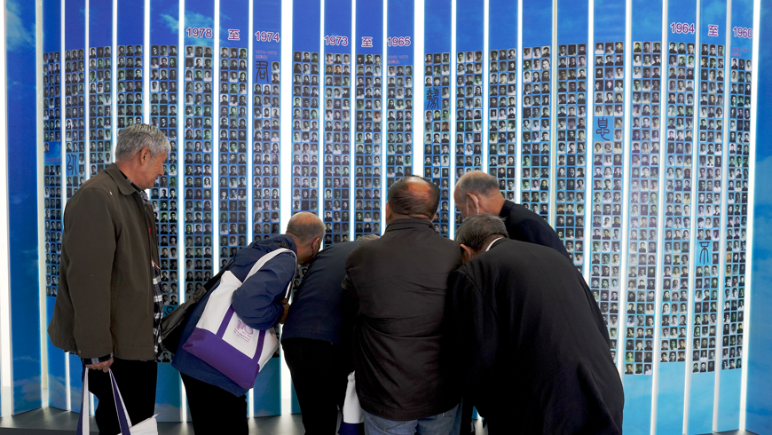 校友墙前,仔细欣赏自己入学时的照片,感慨良多