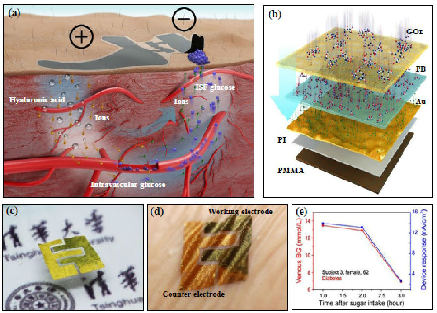 图5. 基于柔性混合电子技术的柔性无创血糖测量器件