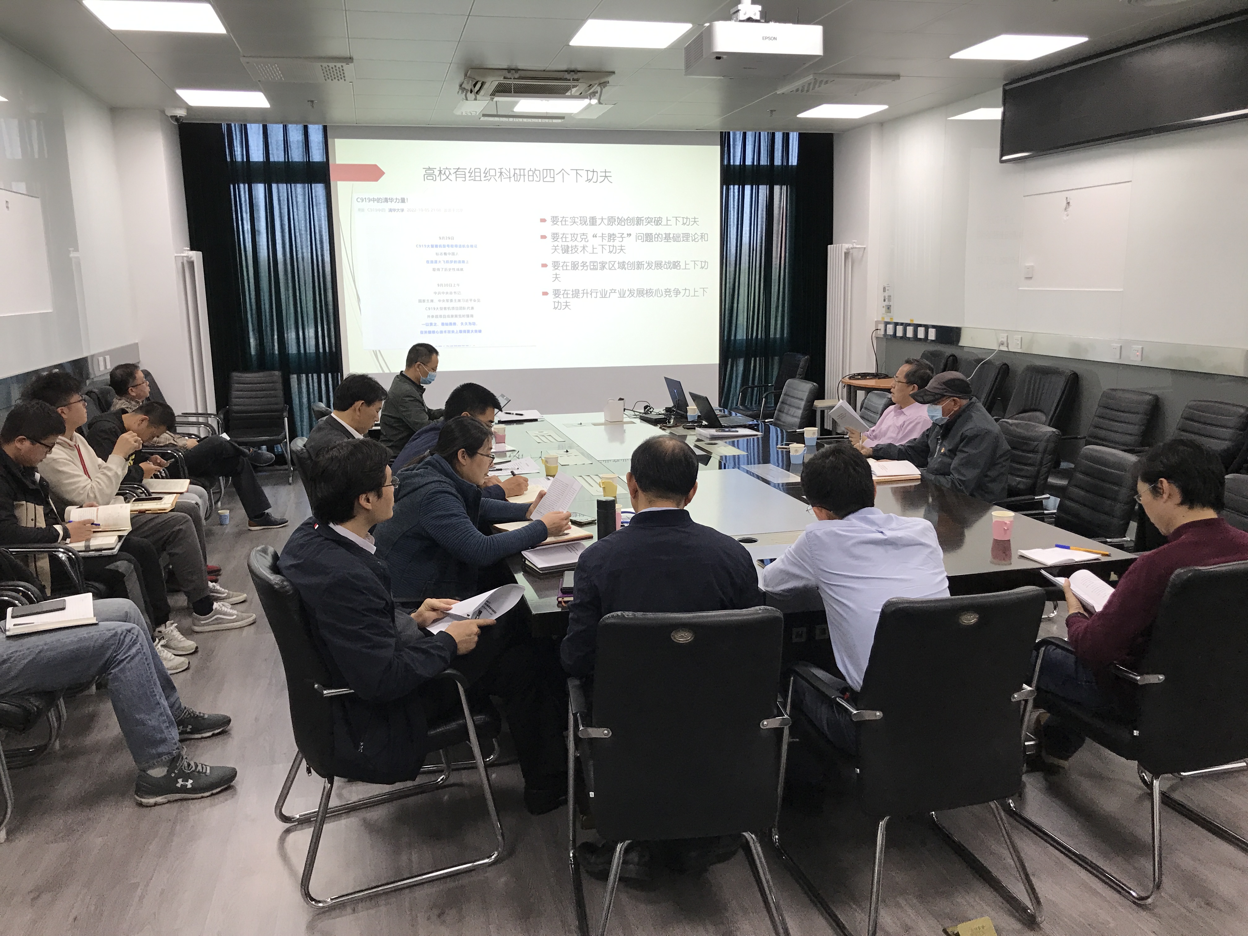 参会人员首先观看了习近平总书记在会见C919大型客机项目团队代表并参观项目成果展览时的视频介绍,副院长王兵以“充分发挥新型举国体制优势,努力实现高端装备制造更多重大突破”为题,带领与会人员进行了学习。习近平总书记强调要充分发挥新型举国体制优势,在关键核心技术攻关上取得更大突破。要着眼长远战略,根据实际情况制定切实目标,选择正确技术路线。王兵汇报了C919大飞机事业的重要里程碑,取得的经验与启示,新型举国体制等相关内容。结合“C919中的清华力量”,强调了在今后一个时期,学院面向国家重大需求,结合学校创新行动计划,进一步做好有组织科研工作,在实现重大原始创新与关键核心技术突破等方面下功夫。