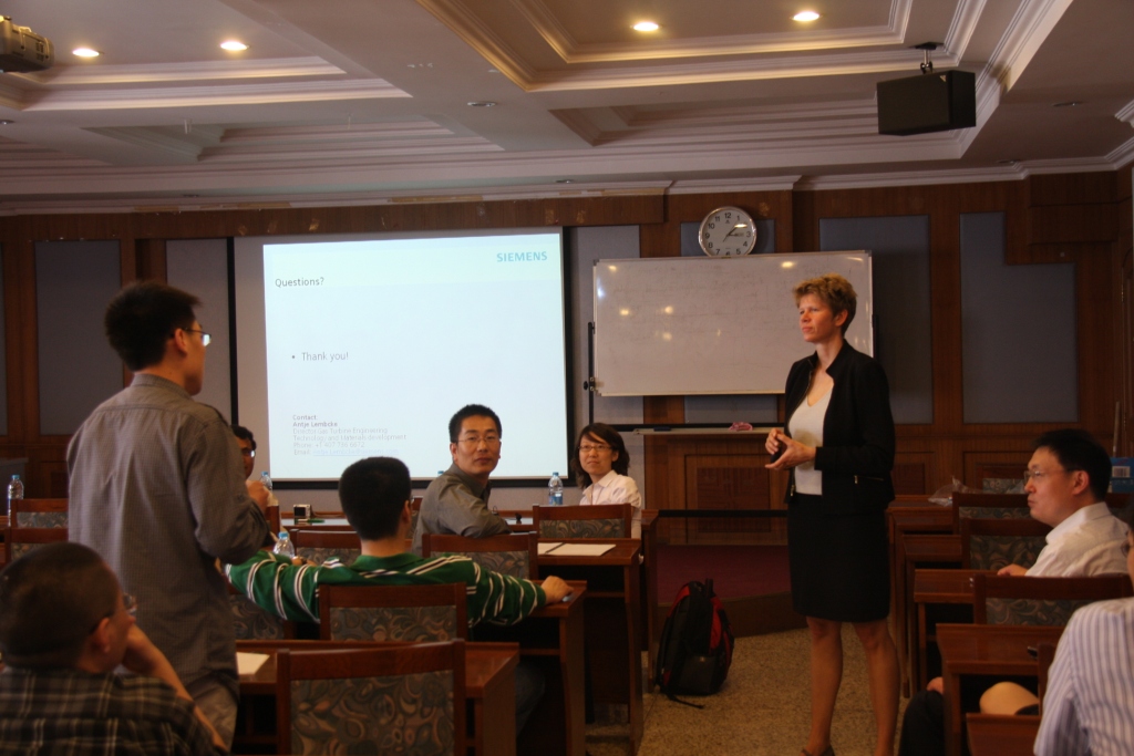 下午,西门子美国研究中心的安特莱博克(Antje Lembcke)在技科楼1512多功能报告厅作报告,介绍在全球碳减排环境下燃气涡轮发电研发技术需求的前景。热能系、麻豆tv