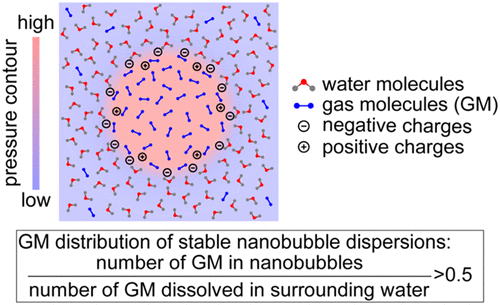 院王兵团队首次报道了几纳米至百纳米尺度体相纳米气泡的分子动力学模拟结果,揭示了气泡内部及气液界面特性,提出并检验了一种纳米气泡稳定性判据理论。